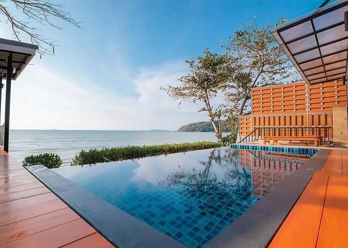 Doté d'une terrasse avec une vue sur la mer, cet établissement Koh Sirey Beachfront Pool Villa - 2 Bedrooms House est à 37 minutes en voiture de l'aéroport international de Phuket. Vous pourrez faire de la plongée et du cyclisme dans villa, situé à moins de 4 km du Parc Saphan Hin.